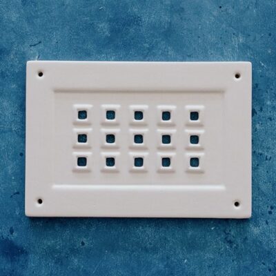 POTERY VENT- 15 SQUARE HOLES 17cm X 24.5cm GLAZED WHITE 1479