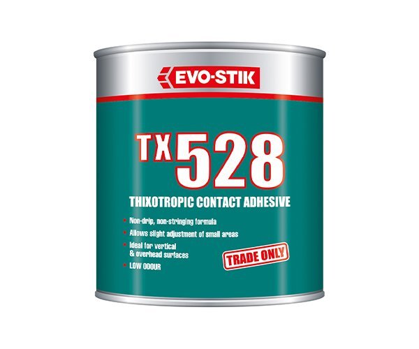 EVO-STIK TX528 Thixotropic Contact Adhesive is a multi-purpose, repositionable adhesive that’s ideal for use on vertical as well as horizontal surfaces thanks to its non-drip formulation. It is particularly suitable for bonding decorative plastic sheets and other rigid plastics such as PVC and ABS to wood, metal and wood composite boards.