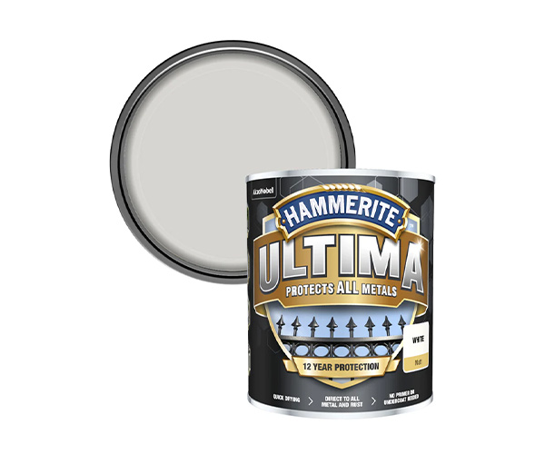 Hammerite Ultima Matt gives superior protection to any metal, for internal and external use. A water-based paint that can be applied direct to rust, Zinc, Galvanised Metal, Aluminium, and any other metals. No primer required. Ultima is quick drying and gives a 12 year protection against the forces of nature.