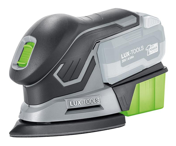 The high-quality LUX-TOOLS A-MS-20 cordless multi-grinder allows you to clean surfaces, edges, nails and decorations cleanly. Particularly suitable for sanding wood and metal. Its power is 20 V with an intense vibration speed of 11,000 rpm and a grinding surface of 100 mm x 150 mm. The sander is part of the practical LUX 1 PowerSystem series and can be operated with a high-quality lithium-ion battery. The desired battery can be purchased separately in 2 Ah or 4 Ah versions. Thanks to the environmentally friendly battery operation, it works with great freedom of movement and flexibility – without interfering cables and without depending on the nearest socket.