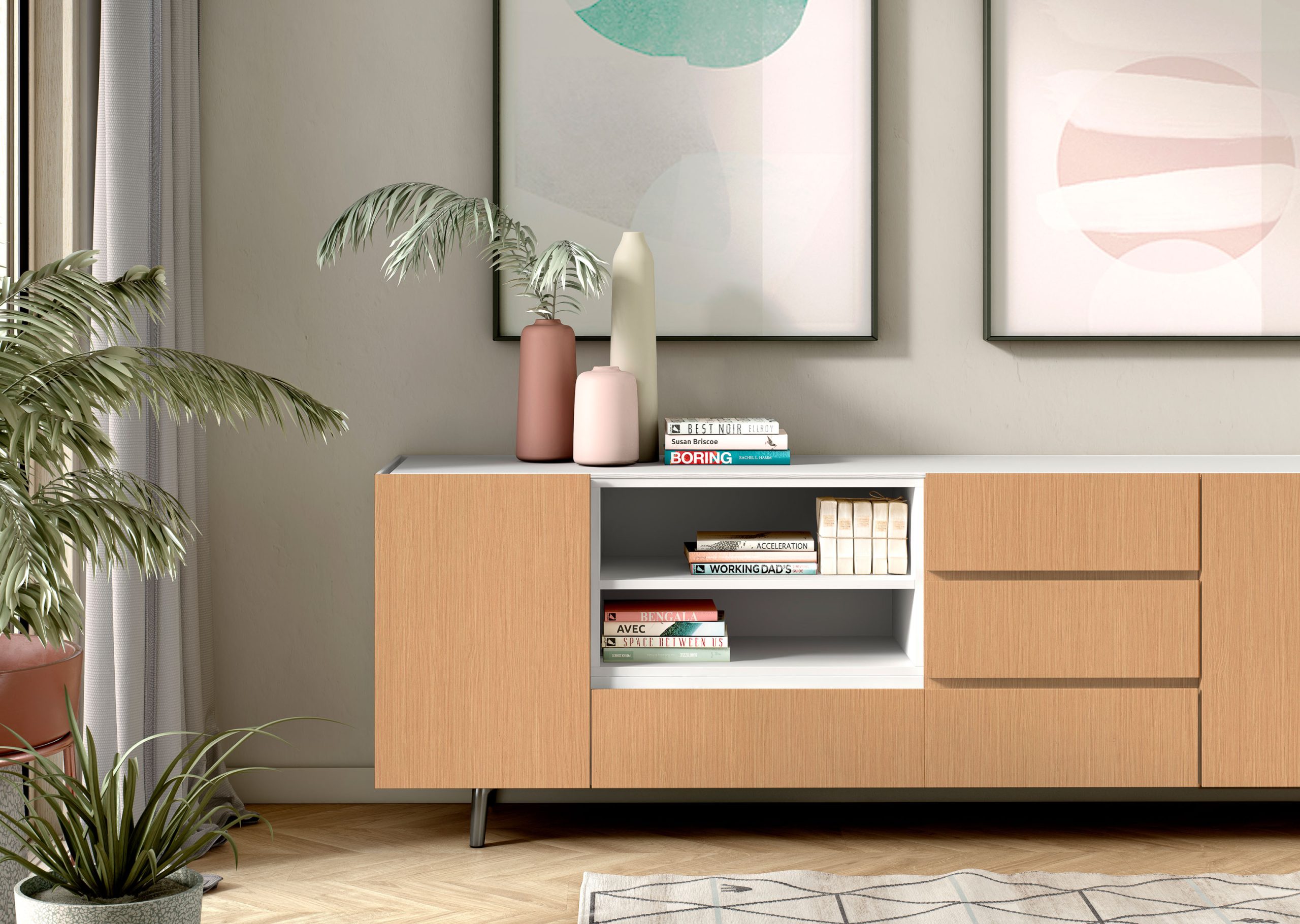 The combination of designs and finishes not only allows the reproduction of natural wood veneers but also of other materials, such as fabrics, furs, stones, etc. It leaves the field open for creativity and fantasy.