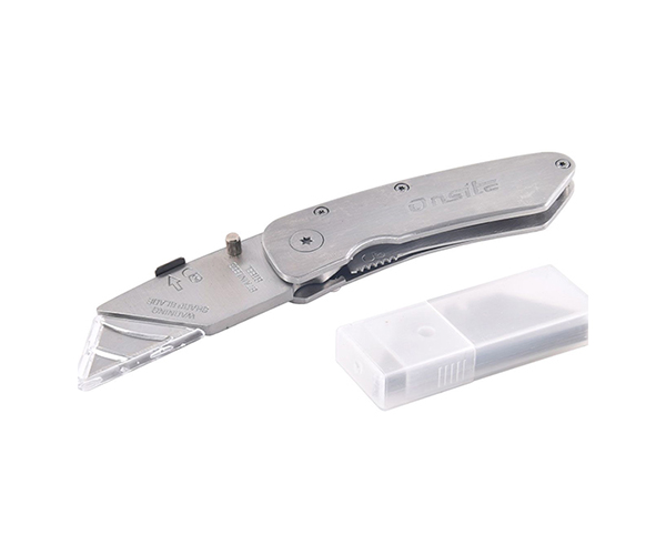 ONSITE FOLDING UTILITY KNIFE STAINLESS STEEL W/10 BLADES ART 711102