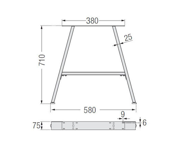 PAIR DINING TABLE A-SHAPED LEGS MATT BLACK W580mm x H710mm ART. F15315-NM
