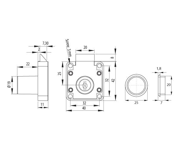 SISO ROLL BLIND LOCK X-855 19X22mm NICKEL PLTD W/PUSH KNOB ART. 14.01.462