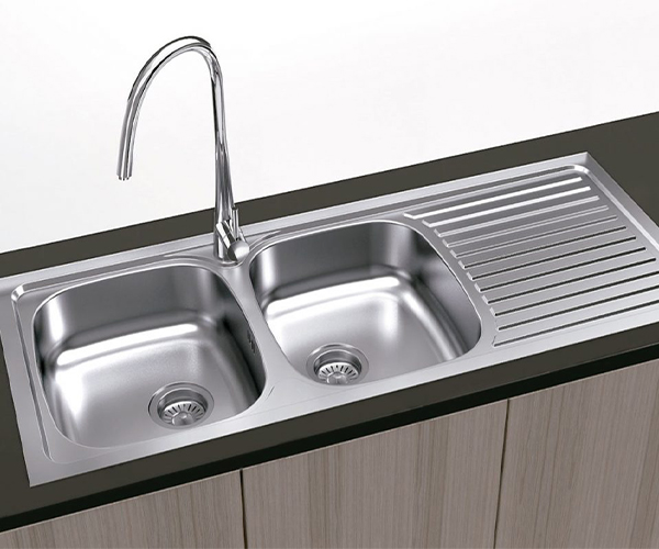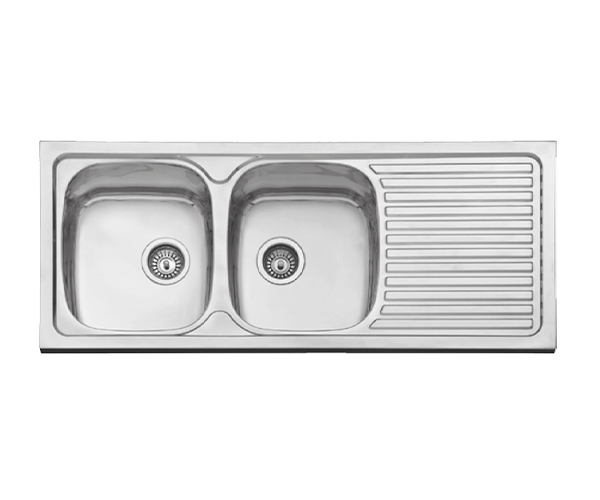 SS SINK PRAGA TWO BOWL+ DRAINBOARD 500x1200mm W/ACCS ART. F16753