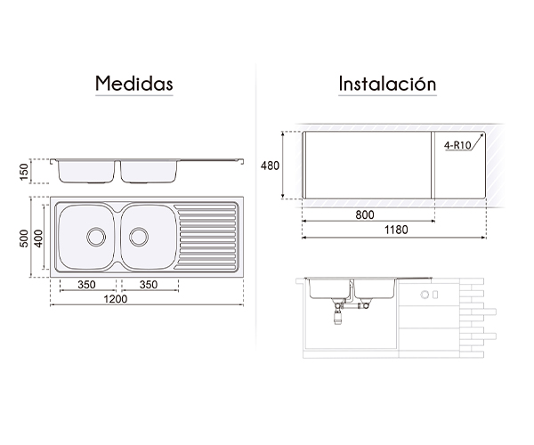 • This economical one-piece design includes a 3 1/2″ basket strainer with overflow, a standard drain, and a siphon.