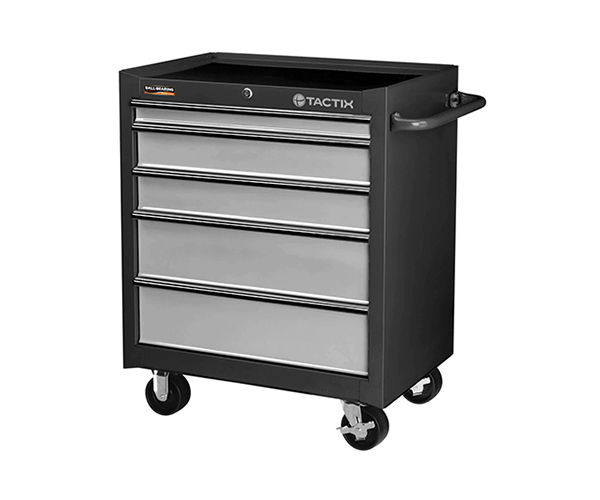 TACTIX 26in. 5 DRAWER STEEL CABINET TROLLEY ON WHEELS ART: 326403