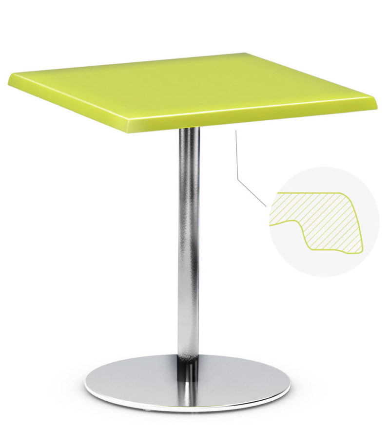 The result is a table top that has no seams, and which his therefore extremely moisture resistant, and because they are made with extreme heat and pressure, the finished products are extremely impact resistant. Additionally, Topalit table tops can withstand temperatures from -50 degrees to 90 degrees Celsius. The icing on the cake is that Topalit table tops are UV resistant, to protect their beautiful finishes, and have pore-less surfaces that are extremely easy to clean.